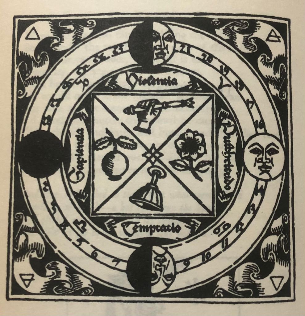 In A Vision, Yeats makes sense of the presence of these forces in our individual lives through the image of ‘The Great Wheel’. In this symbol, the dialectical oppositions of life and death are superimposed onto the 28 phases of the lunar calendar, aligning each stage of our existence with a juncture of the moon.